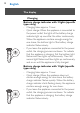 English Note: After replacing the shaving heads, you need to reset the replacement reminder by pressing the on/off button for 7 seconds. Turbo setting (specific types only) The appliance is equipped with a Turbo setting. This allows you to shave hard-to-reach areas more quickly. Charging Charging takes approx. 1 hour. Note: You cannot use the appliance while charging. Charge the shaver before you use it for the first time and when the display indicates that the battery is almost empty.