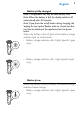 English 2 25 4 Turn the retaining rings anticlockwise and remove them. 1 5 Remove the shavings heads from the shaving head holder and throw them away. 6 Place new shaving heads in the holder. Note: Make sure that the projections of the shaving heads fit exactly into the recesses. 1 2 7 Place the retaining rings back onto the shaving head holder and turn them clockwise ('click').