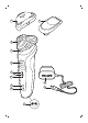 English - Each retaining ring has two recesses and two projections that fit exactly in the projections and recesses of the shaving head holder. - Turn the ring clockwise until you hear a click and the ring is fixed. 17 Note: Hold the shaving head holder in your hand when you reinsert the shaving heads and reattach the retaining rings. Do not place the shaving head holder on a surface, as this may cause damage to the shaving heads.