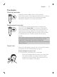 English 2 Rinse the shaving unit with warm water. 3 Turn off the shaver. Press the release button to open the shaving unit. 4 Rinse the hair chamber and shaving head holder with warm water. 5 Carefully shake off excess water and let the shaving head holder air-dry completely. 6 Close the shaving head holder ('click'). Cleaning the click-on attachments Clean the trimmer attachment under the tap after each use.