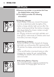 ENGLISH LED Display ◗ Remove any sticker or protective foil from the display before using shaver. ◗ The display provides the following information: ◗ Charging Indicator - Quick charge: When you connect the power cord to an electrical outlet the lights of the battery charge indicator light up one after the other continuously. When the bottom charging light slowly blinks, the shaver contains enough energy for one shave.