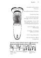 English Features MultiPrecision Blade System Super Lift and Cut Action Shaver Head Release Button • Hair Chamber captures shaven hair Electronic On/Off Button Turbo+ Mode Cleaning Reminder Indicator Replacement Shaving Heads Indicator Travel Lock ‘Unplug for use’ Indicator Battery Display • Battery Charge, Full & Low Indicators