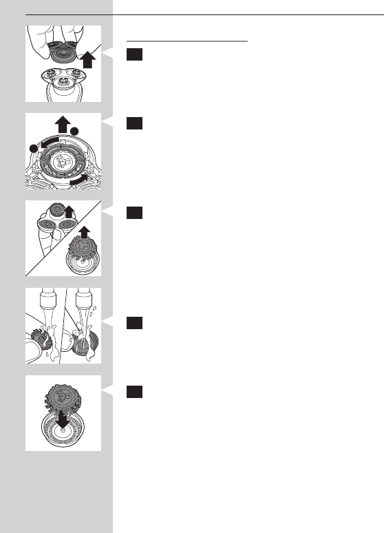 3 ถอดหัวโกนออกจากที่ยึดหัวโกน ชุดหัวโกนแตละอันจะมีใบมีดและฝา