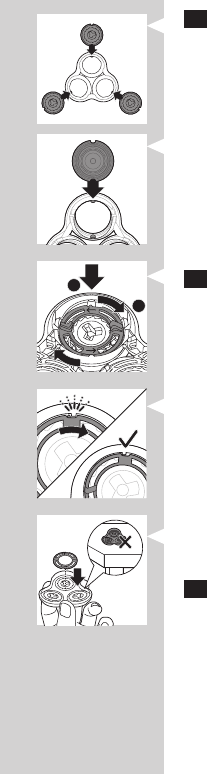 7 ใสแหวนยึดกลับเขาไปในชองใสหัวโกน แลวหมุนตามเข็มนาฬิกาจนสนิท