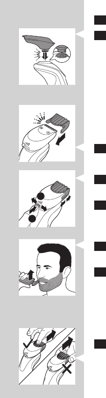 1 將梳具直接滑入配件兩側的導引溝槽 (直到