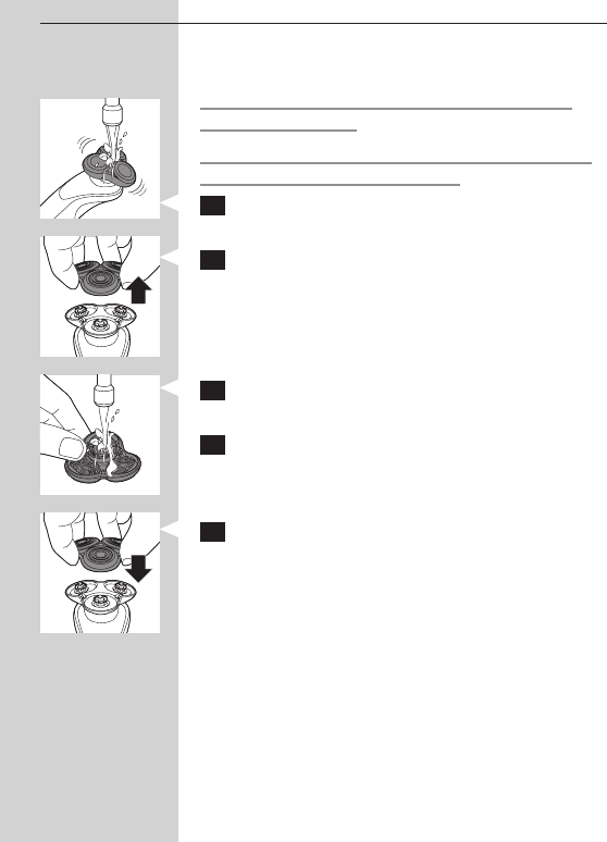 仔細甩乾多餘的水份之後,讓電鬍刀刀頭固