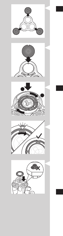 7 将固定环放回剃须刀头支架并将其顺时针旋