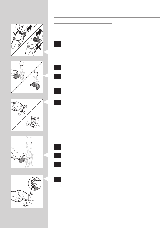 2 在热水龙头下冲洗修剪器附件片刻。