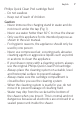 English 7 Philips Quick Clean Pod cartridge fluid - Do not swallow. - Keep out of reach of children. Caution - Never immerse the charging stand in water and do not rinse it under the tap (Fig. 1). - Never use water hotter than 60°C to rinse the shaver. - Only use this appliance for its intended purpose as shown in the user manual. - For hygienic reasons, the appliance should only be used by one person.