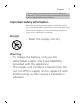English Removing the rechargeable shaver battery Only remove the rechargeable battery when you discard the shaver. Before you remove the battery, make sure that the shaver is disconnected from the wall socket and that the battery is completely empty. Take any necessary safety precautions when you handle tools to open the shaver and when you dispose of the rechargeable battery. Be careful, the battery strips are sharp.
