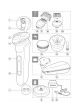 English General description 1 Pop-up trimmer 2 Trimmer release slide 3 Shaving unit 4 Shaving unit release button 5 On/off button 6 Menu button 7 Socket for small plug 8 Charging stand 9 Supply unit 10 Small plug 11 Protection cap 12 Pouch 13 Philips Quick Clean Pod Cartridge 14 Quick Clean Pod 15 Cleaning brush 16 Length settings 17 Click-on beard styler attachment 18 Comb for beard styler attachment 19 Attachment holder 20 Click-on cleansing brush attachment Note: The accessories supplied may vary for di