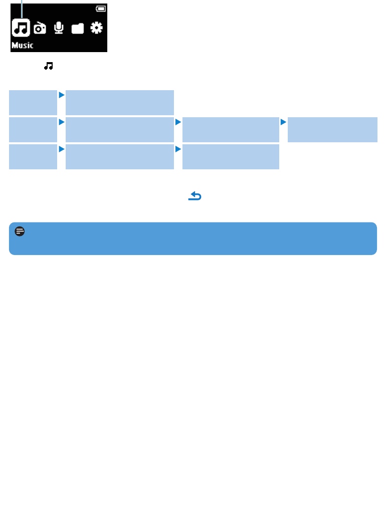 1 Kies in het hoofdmenu om de muziekmodus in te schakelen.