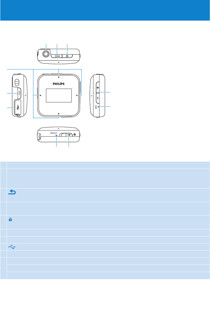 J 1 Terugspoelen (hou ingedrukt om snel terug te spoelen)