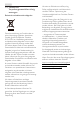 6. Kundendienst und Garantie 6. Kundendienst und Garantie 6.1 Kundendienst und Garantie Informationen über Garantieabdeckung und zusätzliche Anforderungen zur Inanspruchnahme des Kundendienstes in Ihrer Region erhalten Sie auf der Webseite www.philips.com/support. Alternativ können Sie Ihren örtlichen Philips-Kundendienst über eine der nachstehenden Nummern kontaktieren.