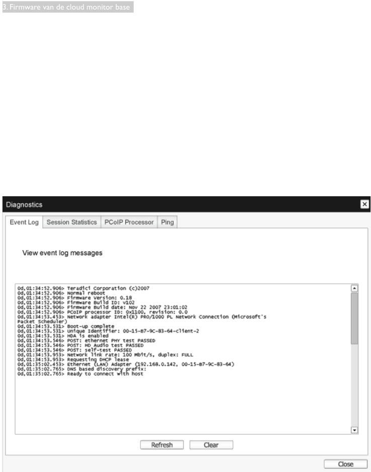 berichten in het logboek met het tijdstempel. Er zijn twee knoppen beschikbaar.