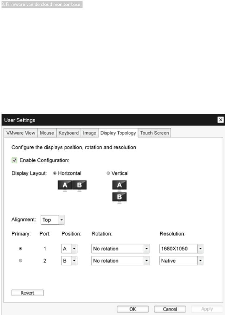 Verander de instellingen voor Schermtopologie altijd in het tabblad Schermtopologie op de zero client-