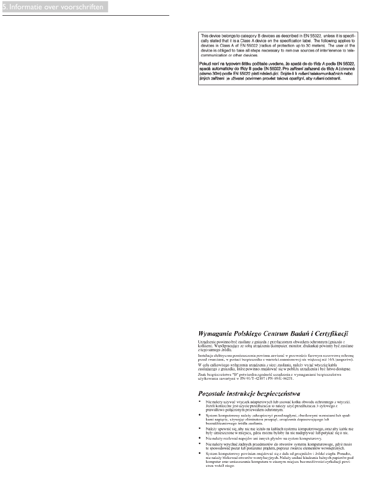 5. Informatie over voorschriften