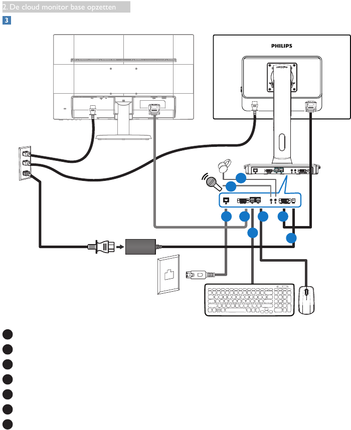 3. Sluit de netvoedingskabels van de cloud monitor base en van de monitor aan op een stopcontact.