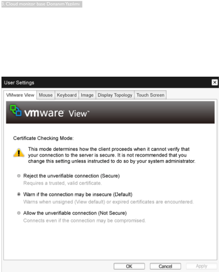 sayfadakiayarlarıdeğiştiremeyeceklerdir.VMwareViewparametrelerideyönetimselwebarabirimi