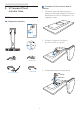 2. Установка Cloud monitor base Установка на Cloud monitor base на монитор 2. Установка Cloud monitor base 1. Положите монитор экраном вниз на ровную устойчивую поверхность. Будьте внимательны, чтобы не поцарапать и не повредить экран. 2.1 Установка Содержимое упаковки Cloud monitor base SB4B1927VB 2. Вставьте основание в комплект креплений VESA до щелчка. Cloud monitor base 使用 前请阅读使用说明 in k l © 20 14 Ko n User’s Manual Monitor drivers SmartControl software 保留备用 ijke P h il ip s ig h ll r .