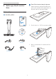 2. Sette opp cloud monitor base Feste Cloud monitor base på skjermen 2. Sette opp cloud monitor base 1. Plasser skjermen med skjermpanelet ned på en jevn overflate. Vær oppmerksom så skjermen ikke blir ripet eller skadet. 2.1 Installasjon Innholdet i pakken Cloud monitor base SB4B1927VB 2. Smekk basen inn i VESA-montasjeområdet. Cloud monitor base 使用 前请阅读使用说明 in k l © 20 14 Ko n User’s Manual Monitor drivers SmartControl software 保留备用 ijke P h il ip s ig h ll r .A N .