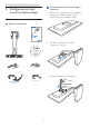 2. Konfigurowanie bazy monitora chmurowego Zmontuj bazę monitora chmurowego z monitorem 2. Konfigurowanie bazy monitora chmurowego 1. Połóż monitor ekranem w dół na gładkiej powierzchni. Należy uważać, aby nie zarysować lub nie uszkodzić ekranu. 2.1 Instalacja Zawartość opakowania Cloud monitor base SB4B1927VB 2. Zatrzaśnij podstawę w obszarze montażowym VESA. Cloud monitor base 使用 前请阅读使用说明 in k l © 20 14 Ko n User’s Manual Monitor drivers SmartControl software 保留备用 ijke P h il ip s ig h ll r .