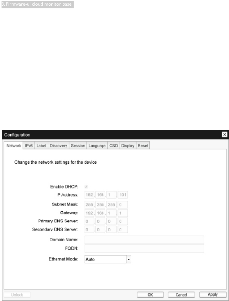 (Congurare iniţială) sau din pagina Network (Reţea). După ce actualizaţi parametrii în această pagină,