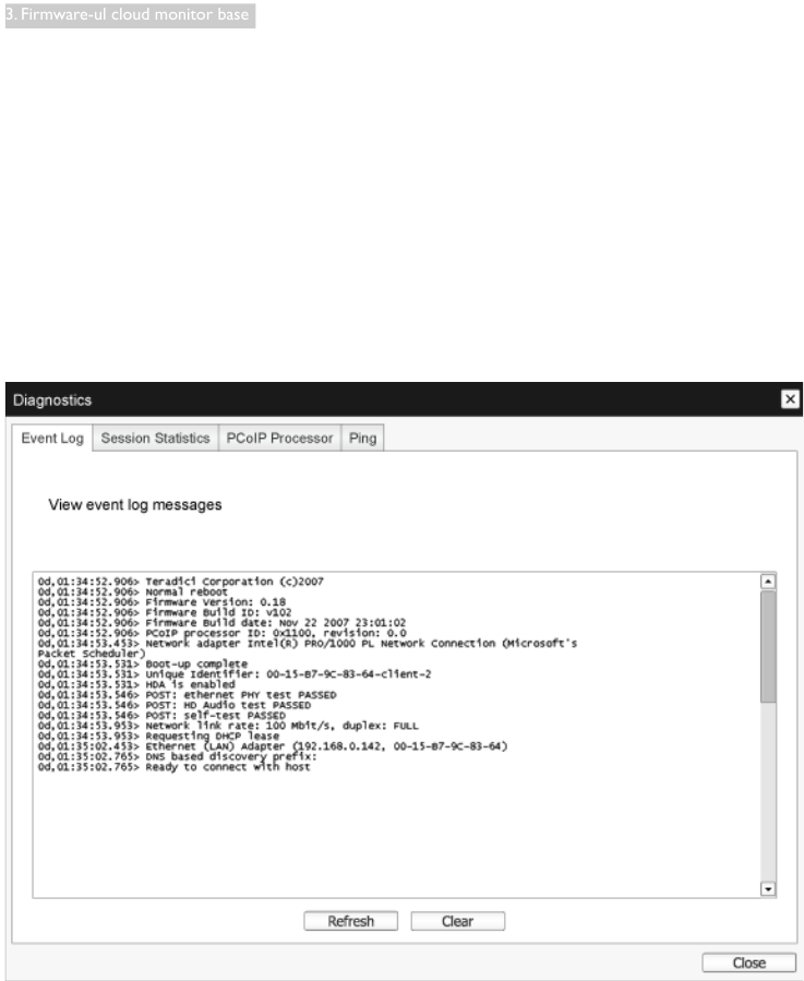 Câmpul View event log messages (Vizualizare mesaje din jurnalul de evenimente) afişează mesajele