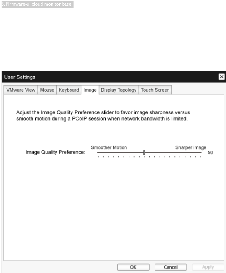 Pagina Image (Imagine) vă permite să modicaţi calitatea imaginii pentru sesiunea PCoIP. Modicările se
