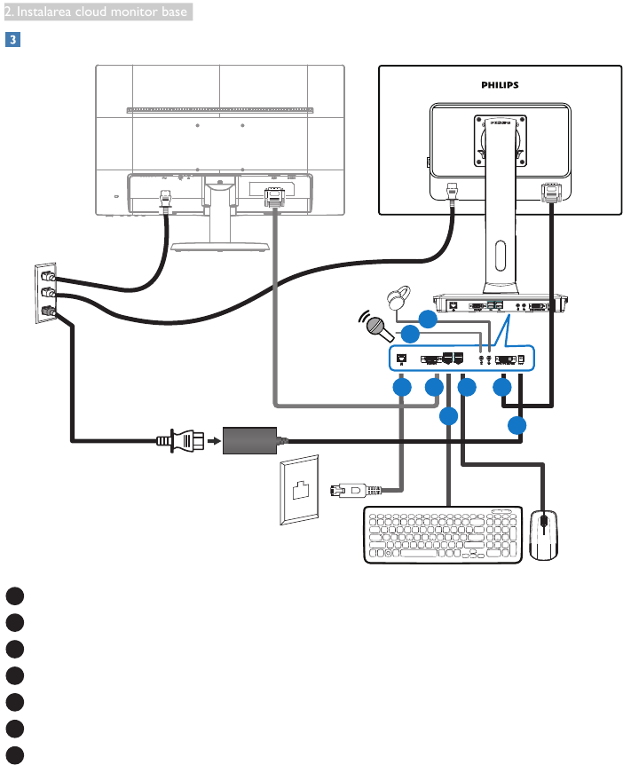 3. Conectaţi cablul de alimentare al cloud monitor base şi cablul de alimentare al monitorului la o
