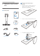 2. Nastavitev cloud monitor base Povezava cloud monitor base z monitorjem 2. Nastavitev cloud monitor base 1. Položite monitor s prednjo ploskvijo na gladko površino. Pazite, da zaslona ne opraskate ali poškodujete. 2.1 Namestitev Vsebina paketa Cloud monitor base SB4B1927VB 2. Pripeti na osnovo območja VESA mount. Cloud monitor base 前请阅读使用说明 使用 in k l © 20 14 Ko n User’s Manual Monitor drivers SmartControl software 保留备用 ijke P h il ip s ig h ll r .A N .