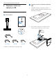 2. Nastavení dokovací základny USB Instalace monitoru na dokovací základnu USB 2. Nastavení dokovací základny USB 1. Umístěte monitor obrazovkou dolů na měkký podklad. Zabraňte poškrábání nebo poškození obrazovky. 2.1 Instalace Obsah krabice SB4B1928 2. Nacvakněte podstavec do držáku VESA. Šroubovákem dotáhněte čtyři šroubky. USB docking stand 使用 前请阅读使用说明 inkl © 2015 Kon User’s Manual USB docking stand drivers 保留备用 sN h ili p ijke P .V.