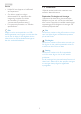 4. Tekniska specifikationer Driftförhållanden Temperaturområde (användning) Temperaturområde (ej i drift) Relativ luftfuktighet Miljöbetingade ROHS Förpackning Specifika substanser Efterlevnad av standarder Myndighetsgodkännande Hölje Färg Avsluta 0°C till 40°C -20°C till 60°C 20% till 80% JA 100% återvinnbar 100% PVC BFR fritt hölje CB, CU-EAC, CE, EMF, ErP, Semko och C-tick Stativ fram: silver, stativ bak: svart, fot: svart Textur Obs 1.