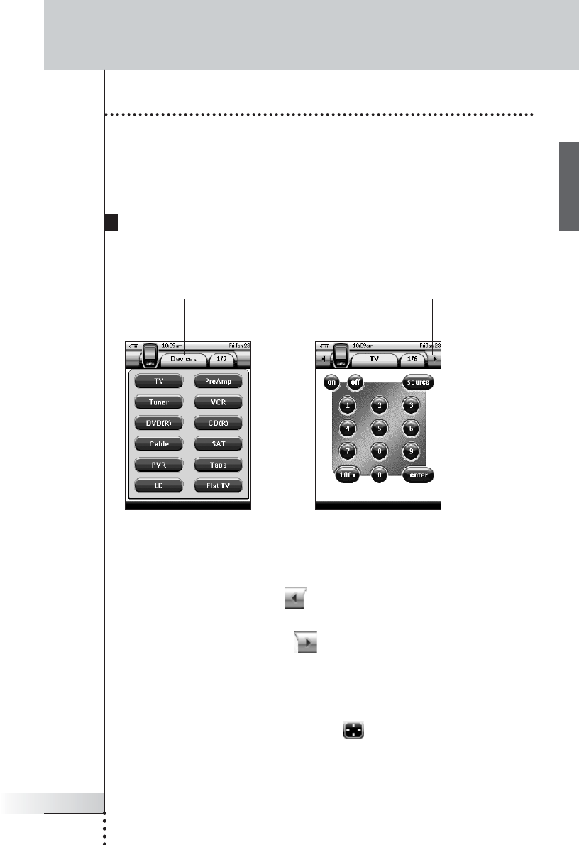 ■ Tap the Device Left button at the top of the touch screen to navigate to