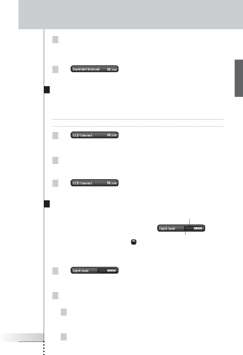 The LCD Timeout button is selected. The ‘+’ and ‘-’ labels appear on the two