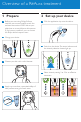 Overview of a RéAura treatment 4 Take care of your skin 1 2 Remove the gel with cold water or a mild cleanser. Charge your device for next use. 3 Store your device safely in its pouch. 4 Make a diary entry in your online treatment guide on www.philips.co.uk/myreaura. Apply laser aftercare complex to hydrate your skin. 5 Clean and store your device 1 2 Detach and rinse the application tip under a running tap. Clean it with the brush. Clean the device with the cleaning cloth.
