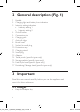 E N GL I S H 7 Charging 7.1 Charging the appliance Charging the appliance takes approximately 6 hours. A fully charged appliance can be used at least for 2 weeks without charging. 1 Make sure the appliance is switched off. 2 Insert the small plug into the socket of the charging stand (1). Put the adapter in the wall socket (2) (Fig. 17). 3 Remove the protection cap. (Fig. 18) 4 Place the appliance upright into the charging stand, make sure that it is well placed. (Fig.