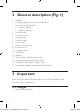 8 Arrumação •• Guarde o aparelho na base de carga (fig. 21). •• Para guardar o aparelho na posição horizontal, coloque-o sobre o rebordo anti-deslocamento. (fig. 22) •• Pode guardar as cabeças na estrutura de arrumação (apenas em modelos específicos) (fig. 23). •• Se levar o aparelho quando viajar, coloque a tampa de protecção na cabeça da escova seca para proteger os filamentos da cabeça da escova. (fig. 24) P ORTUGUÊS D Nota: Nunca coloque a tampa de protecção numa cabeça da escova húmida.