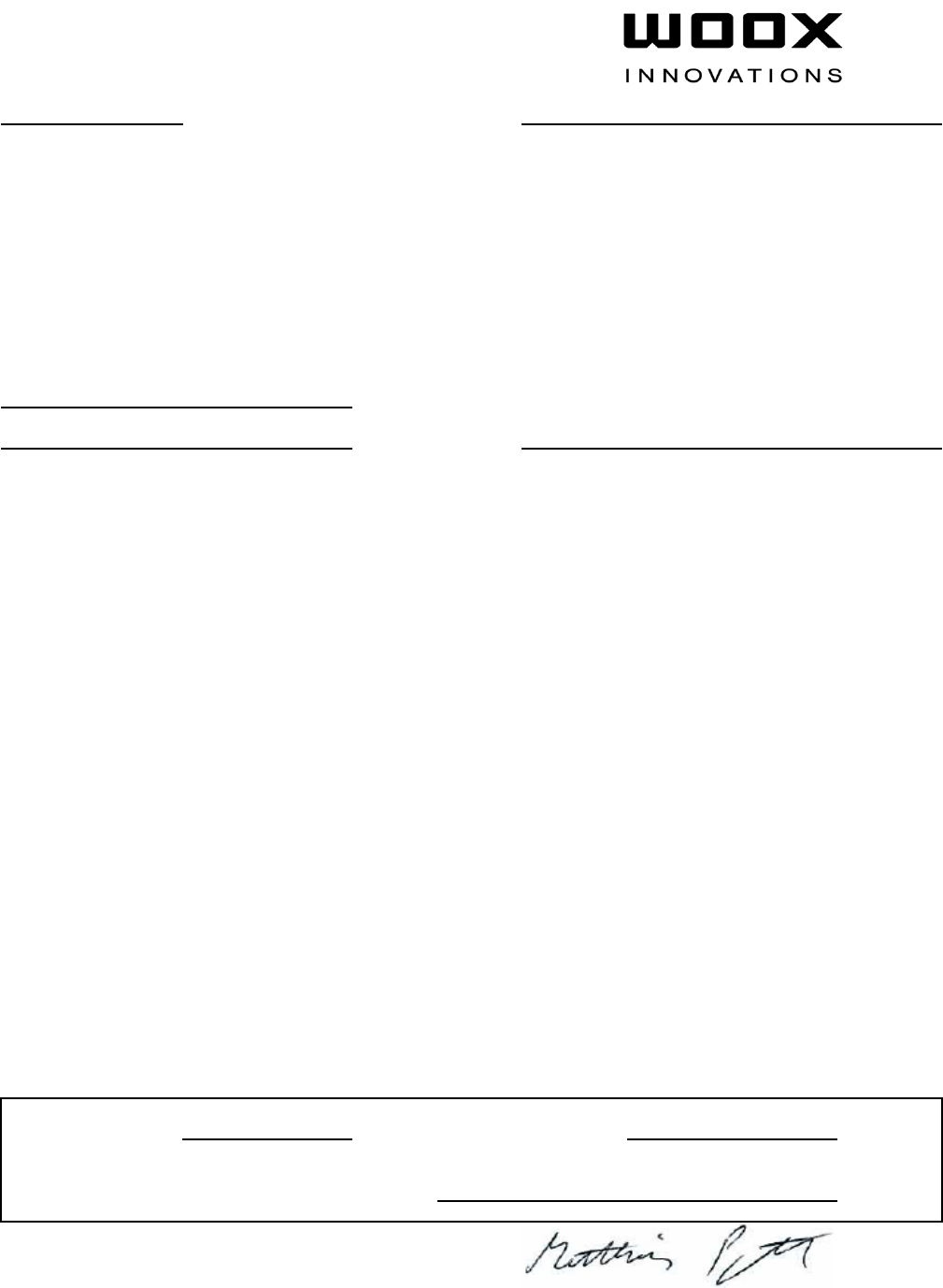 WOOX Innovations Netherlands B.V. HK-WK1407-SCB40XX 2014/02 (Broj izvještaja) (Godina ishođenja CE oznake) Izjava o sukladnosti Mi, WOOX INNOVATIONS NETHERLANDS B.V.