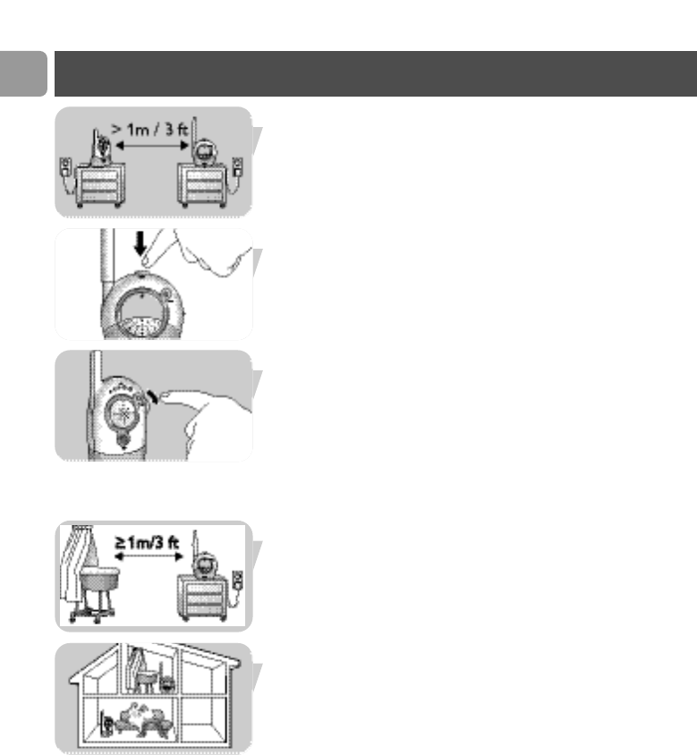 1 Bağlantıyı sınamak için iki üniteyi aynı odaya yerleştirin. Bebek