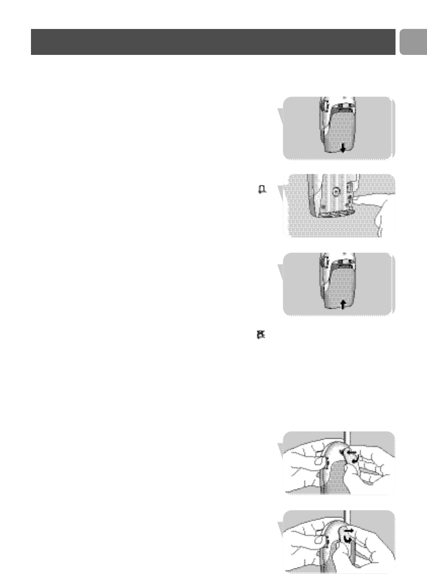 • Insert the little spindle on the rear of the belt clip (B-15) into