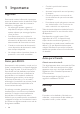 1 Importante Seguridad Este manual contiene información importante acerca de la antena interior de televisión Philips. Léalo detenidamente antes de comenzar la instalación y configuración. • No exponga el aparato a goteos ni salpicaduras, tampoco coloque sobre el aparato objetos que contengan líquidos, como jarrones. • Para desconectar por completo la entrada de alimentación, el conector de alimentación del dispositivo debe estar desconectado de la toma de corriente.