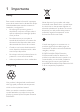 Contenido 20 Safety 20 Recycling 20 2 La SDV5118 Descripción general 3 Comienzo Instalación 4 Configuración de SDV5118 21 21 22 22 Es pa ñol 1 Importante 23 Para recepción VHF/FM 23 Para recepción UHF 23 Configuración de un sintonizador digital con la antena 24 5 Preguntas más frecuentes 25 6 Garantía y servicio 25 7 Glosario 26 ES 19