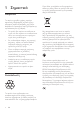 1 Σημαντικό Ασφάλεια Όταν δείτε το σύμβολο του διαγραμμένου κάδου με ρόδες πάνω σε προϊόν, τότε αυτό το προϊόν καλύπτεται από την Ευρωπαϊκή οδηγία 2002/96/ΕΚ: Το παρόν εγχειρίδιο χρήσης περιέχει σημαντικές πληροφορίες σχετικά με την εσωτερική κεραία τηλεόρασης της Philips. Διαβάστε το προσεχτικά πριν ξεκινήσετε την εγκατάσταση και τη ρύθμιση. • Το προϊόν δεν πρέπει να εκτίθεται σε υγρά, ενώ δεν πρέπει να τοποθετούνται πάνω του αντικείμενα που περιέχουν υγρά, όπως ανθοδοχεία.