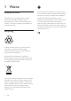 1 Ważne Bezpieczeństwo Niniejsza instrukcja obsługi zawiera ważne informacje dotyczące pokojowej anteny telewizyjnej firmy Philips. Przed rozpoczęciem instalacji i konfiguracji zapoznaj się dokładnie z niniejszą instrukcją. Recykling Produkt został wykonany z wysokiej jakości materiałów i elementów, które mogą zostać poddane utylizacji i przeznaczone do ponownego wykorzystania.