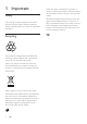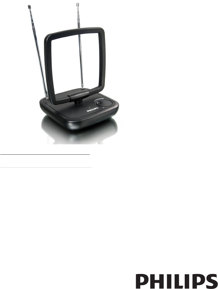 1 Important Safety This manual contains important information about the Philips indoor television antenna. Read it carefully before you start the installation and setup. Recycling Your product is designed and manufactured with high quality materials and components, which can be recycled and reused. When you see the crossed-out wheel bin symbol attached to a product, it means the product is covered by the European Directive 2002/96/EC: Never dispose of your product with other household waste.