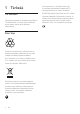 1 Tärkeää Turvallisuus Tässä käyttöoppaassa on tärkeitä tietoja Philipsin TV-sisäantennista. Lue tämä opas huolellisesti ennen laitteen asennusta ja asetusten määrittämistä. Kierrätys Tuotteen suunnittelussa ja valmistuksessa on käytetty laadukkaita materiaaleja ja osia, jotka voidaan kierrättää ja käyttää uudelleen. Jos tuotteeseen on merkitty roskasäiliö, jonka yli on vedetty rasti, se tarkoittaa, että tuotetta koskee EU-direktiivi 2002/96/EY: Älä hävitä tuotetta muun kotitalousjätteen mukana.