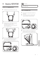 4 Asenna SDV5120 Huomautus •• Parasta signaalia varten vahvistinta voidaan säätää alhaisemmalle tasolle. VHF/FM-vastaanotto Vedä antennin piikit ääriasentoon asti. UHF-vastaanotto 1 2 2 Ota vahvistin käyttöön kääntämällä vahvistussäädintä maksimitasolle. Säädä televisio tai FM-radio halutulle kanavalle tai asemalle. Siirrä antennipiikkejä eri suuntiin ylös ja alas, kunnes signaali löytyy. 3 3 Aseta televisio halutulle kanavalle tai asemalle.