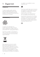 1 Σημαντικό να υπάρξουν στο περιβάλλον και στην ανθρώπινη υγεία. Ασφάλεια Το παρόν εγχειρίδιο χρήσης περιέχει σημαντικές πληροφορίες σχετικά με την εσωτερική κεραία τηλεόρασης της Philips. Διαβάστε το προσεχτικά πριν ξεκινήσετε την εγκατάσταση και τη ρύθμιση. Ανακύκλωση Το προϊόν είναι σχεδιασμένο και κατασκευασμένο από υψηλής ποιότητας υλικά και εξαρτήματα, τα οποία μπορούν να ανακυκλωθούν και να ξαναχρησιμοποιηθούν.