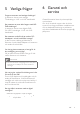 5 Vanliga frågor Fungerar antennen med analoga sändningar? Ja, antennen kan ta emot analoga TV:sändningar i UHF- och VHF-bandbredd. Kan antennen ta emot eller fungera med HDDVB-sändningar? Ja, antennen kan ta emot digitala DVBoch HDTV-sändningar i UHF- och VHFbandbredd. 6 Garanti och service Garantiinformation hittar du på: www.philips. com/welcome Om du vill ha teknisk support kan du skicka e-post till oss.
